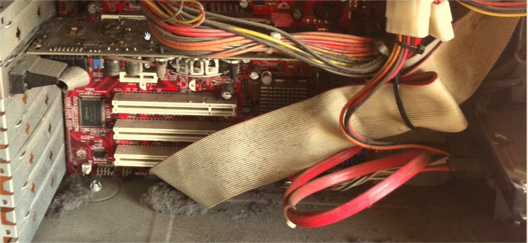 No lo limpiarían en años! Tenía afectados, “gracias” al polvo, varios ventiladores, la tarjeta gráfica y parte de la placa base.  El ventilador de CPU hacia ruido y no giraba bien, la tarjeta gráfica estaba cubierta completamente de polvo y su ventilador no giraba. La placa base podría haber echado chispas, le faltó poco.